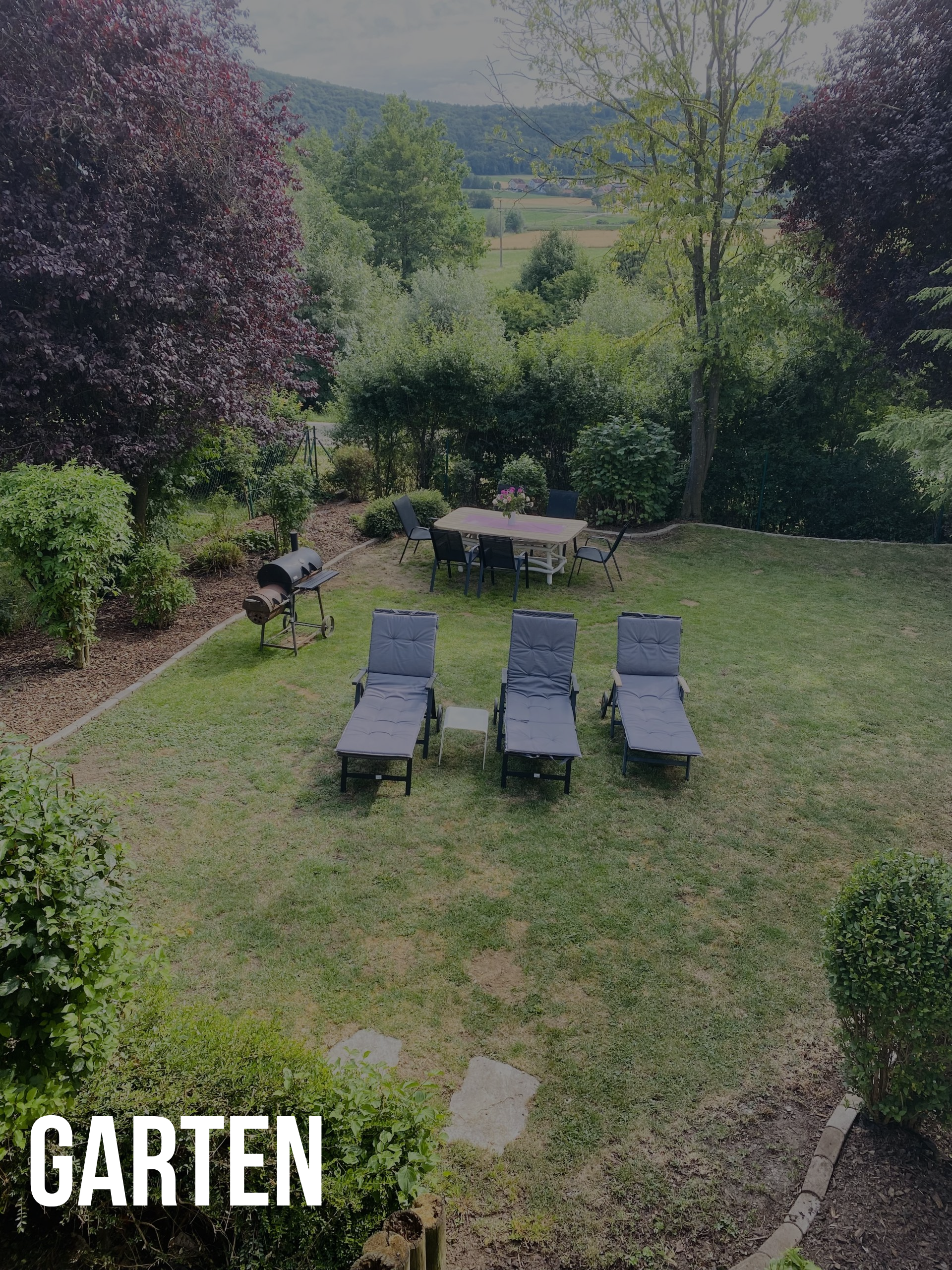 Auf zwei Etagen erstrecken sich fünf Schlafzimmer, zwei Bäder, ein Gäste-WC, ein großzügiger Wohn- und Essbereich, ein behagliches Kaminzimmer, drei Terrassen und eine geräumige Küche, die Platz für bis zu 12 Erwachsene und Kinder bietet. Der weitläufige Garten beherbergt verschiedene Sitzbereiche, Sonnenliegen und eine Grillmöglichkeit.